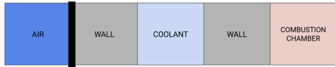 Next, a thermal resistance model was iterated across the coolant path using a MATLAB script. A coolant passage width of 0.25″ was found to result in an allowable 71C wall external wall temperature.